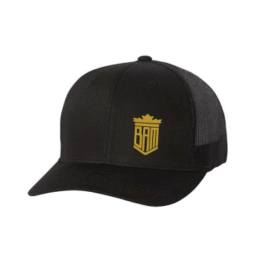 Black baseball hat with mesh back and a snapback closure.